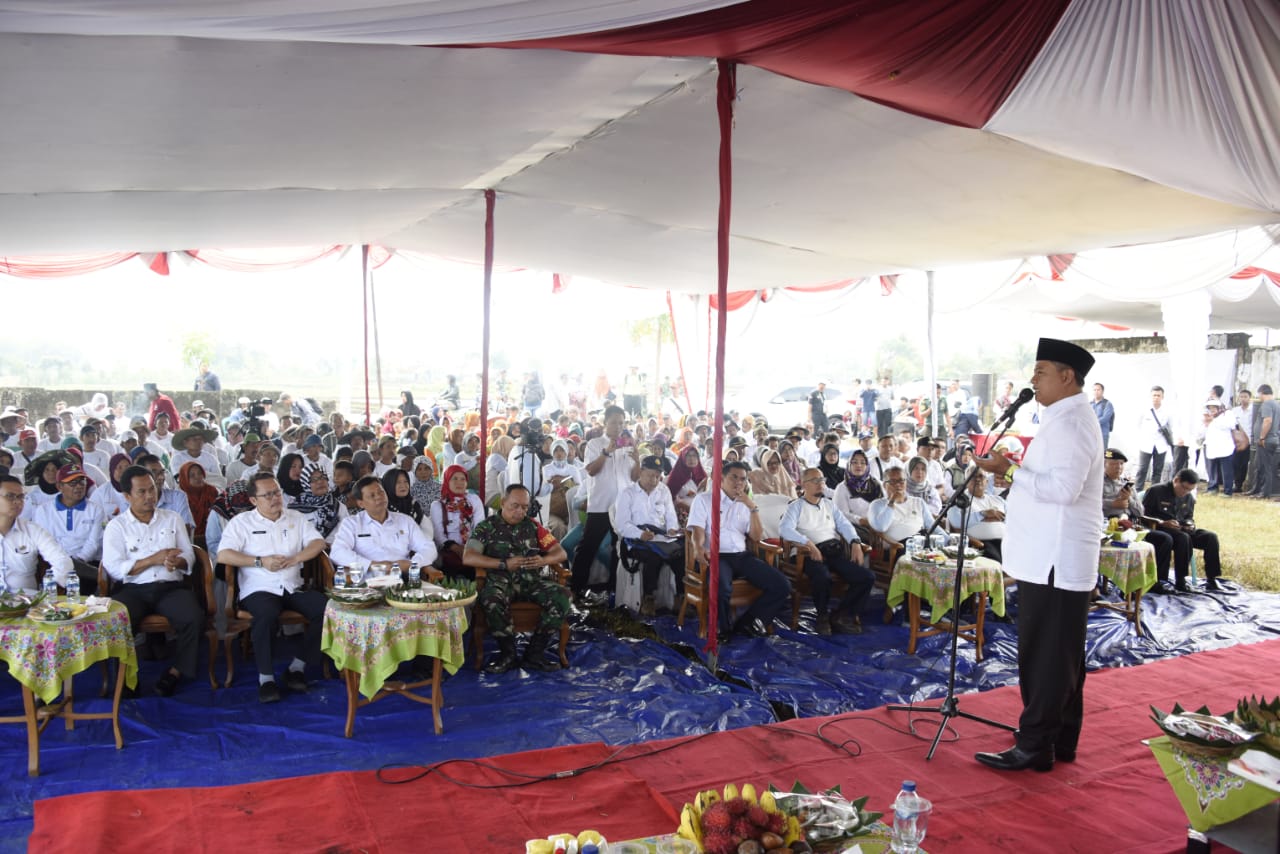 “Tapi kalau kita bertekad berikhtiar untuk panen 2020 tidak akan kurang, kita bisa mengejar dengan Gerakan-Gerakan Tanam seperti ini.”