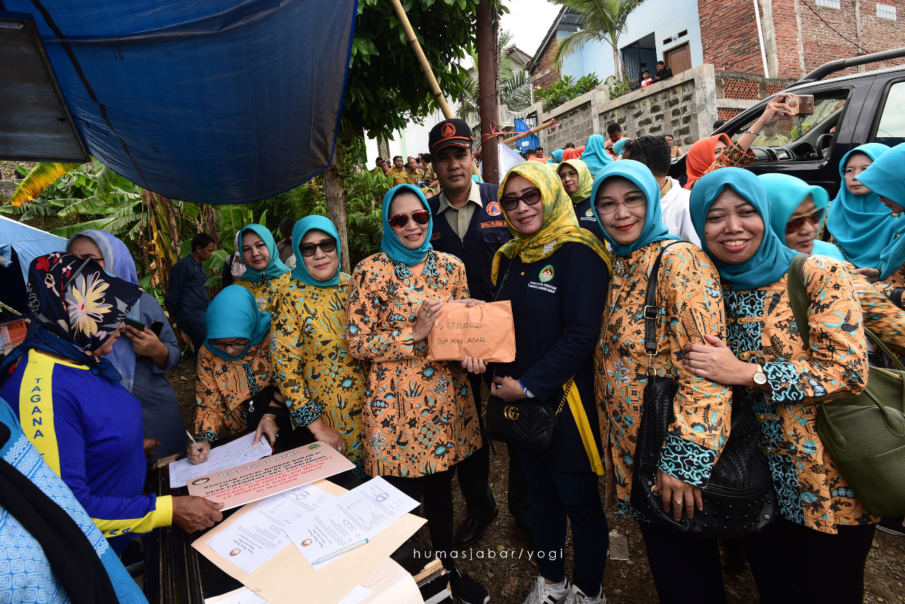 “Bantuan yang tadi diserahkan merupakan hasil kolektif DWP OPD yang ada di lingkup Pemda Provinsi Jabar, selain itu ada juga dari BPBD. Dana tersebut dihimpun selama dua hari. Alhamdulillah terkumpul sejumlah uang dan barang yang banyak sekali,” tambahnya.
