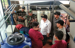 Pada kunjungannya kali ini disektor 7, Deputi 4 Kemenko Maritim Dr Safri Burhanudin berkesempatan melihat langsung pengolahan air bersih yang diambil dari aliran Citarum, serta melakukan rapat koordinasi di bantaran Desa Sukamukti.