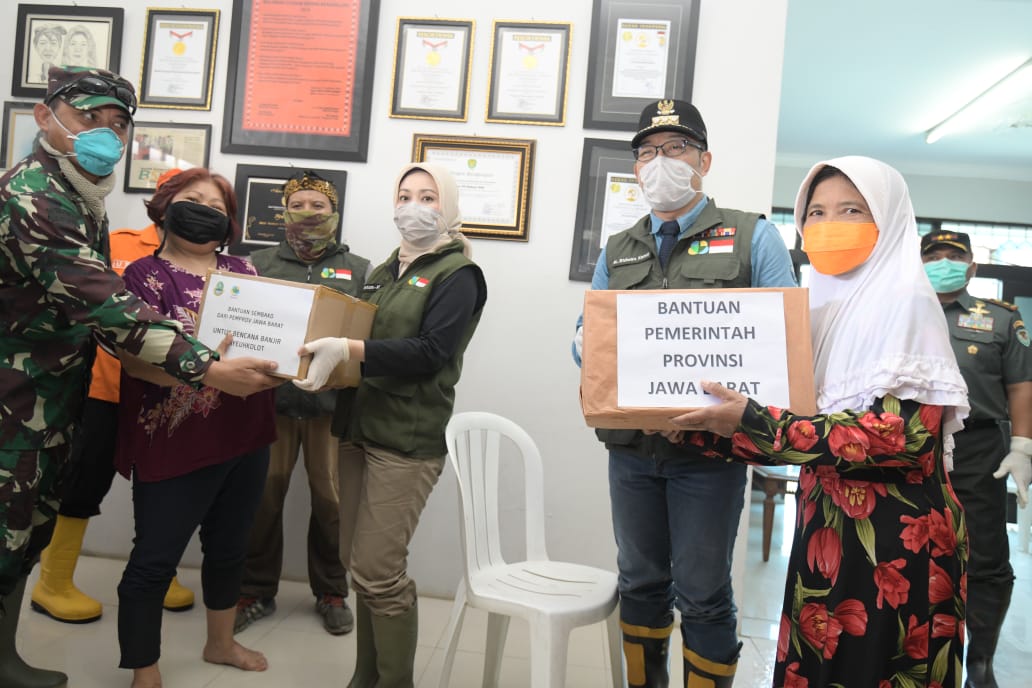 Dalam peninjauan ini, Kang Emil sekaligus menyerahkan bantuan logistik dari Pemerintah Daerah Provinsi (Pemdaprov) Jabar.
