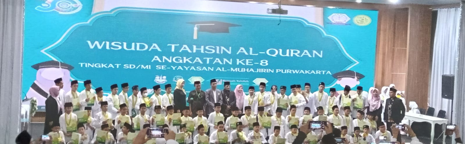 Purwakarta.Swara Jabbar Com.-Wisuda Tahsin Al-Quran Angkatan Ke-8 Tingkat SD/MI Se-Yayasan Al-Muhajirin Purwakarta yang di selenggarakan di Bale Yudistira Pemda Purwakarta beralamat di Jl. Ganda Negara No.25, Nagri Kidul, Kec. Purwakarta, Kabupaten Purwakarta, Jawa Barat, merupakan rangkaian Milad dan Haul Ponpes Al-Muhajirin Ke-30