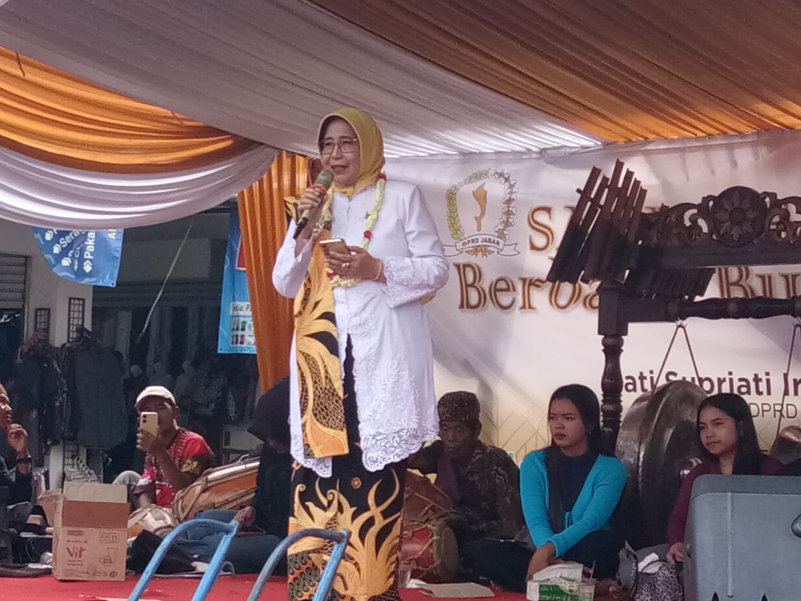Kab Bandung Barat.Swara Jabbar News Com.-Anggota DPRD Provinsi Jawa Barat dari Fraksi Golongan Karya (Golkar) Tati Supriati Irwan menggelar kegiatan Sapa Warga Berbasis Budaya digelar di Pasar Cipeundeuy Kabupaten Bandung Barat.Minggu (7/12/2025). Acara tersebut dihadiri ratusan warga, Perwakilan Pmeerintahan Desa Cipeundeuy, unsur Forkopimcam Cipeundeuy Kabupaten Bandung Barat.