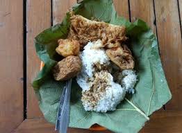 Nganjuk Jawa Timur juga nasi pecel menggunakan daun jati sebagai alasnya