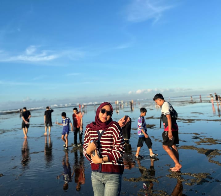 Pesisir yang dangkal saat surut memungkinkan anak-anak bermain air dengan aman di antara karang, mencari ikan hias atau kerrang ujar Tasya Rosliana.