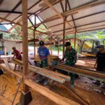 Satgas Pamobvitnas PTFI Yonif 301/PKS Renovasi Rumah Tokoh Adat Kampung Kimbeli